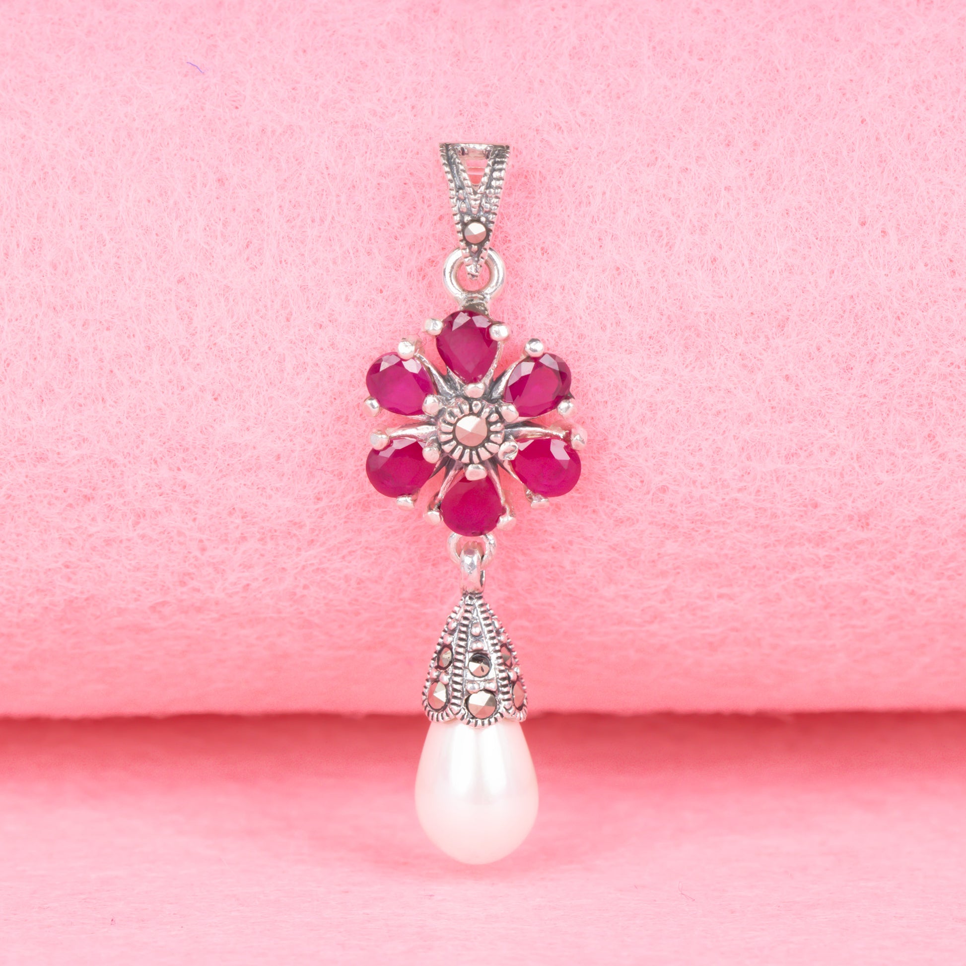 Material & Purity - 925 Sterling Silver | Marquise | Stone: Ruby & Pearl