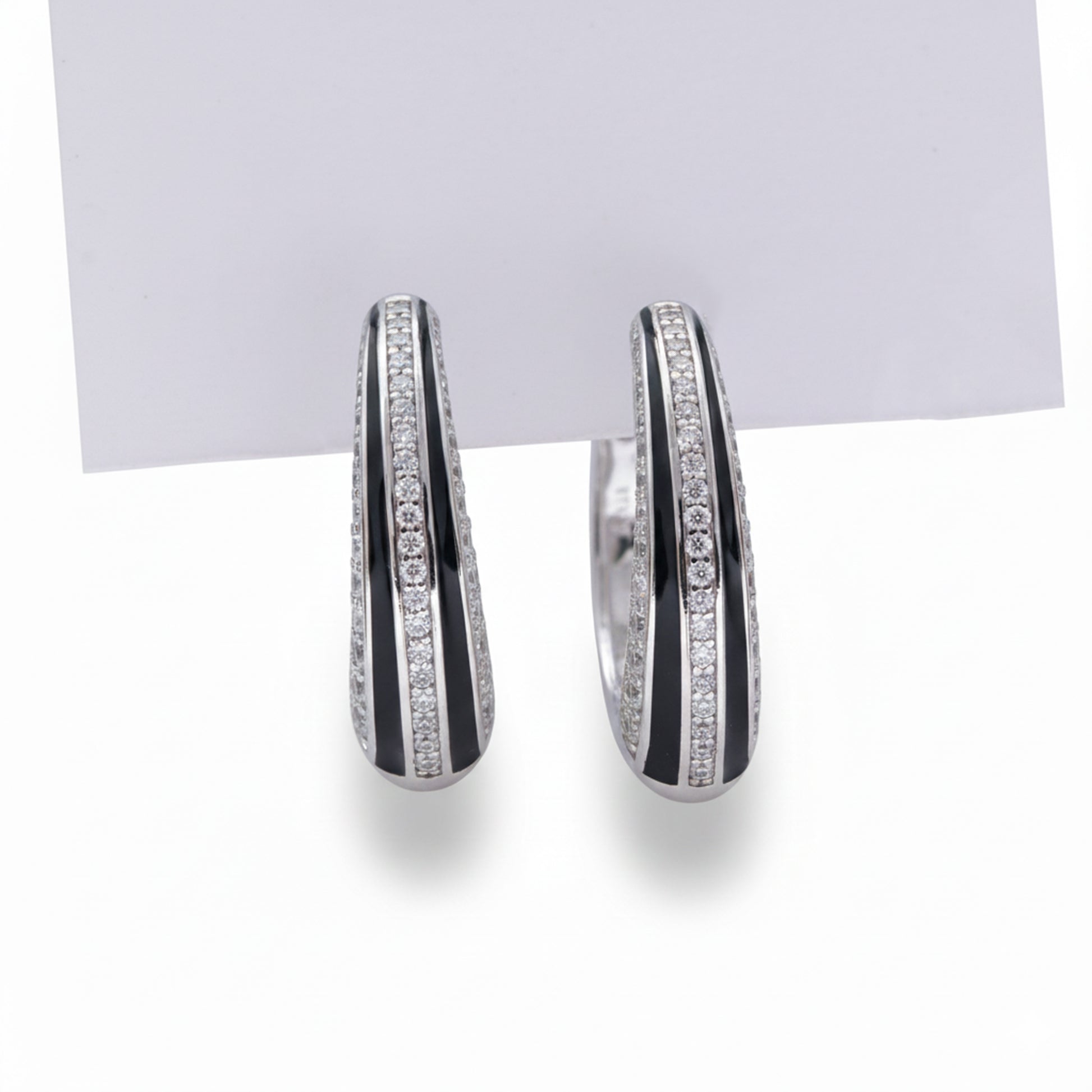 Silver & Black Enamel Huggie Earrings